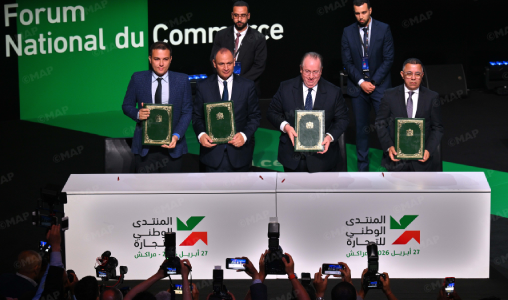 Signés en marge du Forum national du commerce, placé sous le Haut Patronage de Sa Majesté le Roi Mohammed VI, ces protocoles d’accord s’inscrivent dans une approche participative associant secteur public, établissements publics et secteur privé, en vue de poser les bases opérationnelles de la mise à niveau du commerce et de concrétiser les programmes et visions stratégiques.